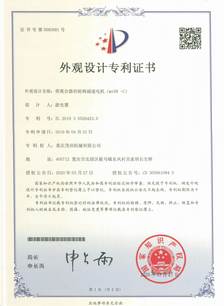 重慶茂田機械有限公司是國家級小巨人企業(yè)、國家高新技術(shù)企業(yè)、重慶市專精特新企業(yè)、重慶市知識產(chǎn)權(quán)優(yōu)勢企業(yè),致力于現(xiàn)代化山地農(nóng)業(yè)機械、各類非標減速電機及其控制系統(tǒng)的研發(fā)、生產(chǎn)、銷售。擁有重慶市市級研發(fā)平臺1個 目前研發(fā)、生產(chǎn)、銷售產(chǎn)品廣泛應用于農(nóng)業(yè)機械、醫(yī)療康復設備、交通代步工具、智能搬運設備、以及機器人動力系統(tǒng)等領(lǐng)域。我們的產(chǎn)品具有完整的自主知識產(chǎn)權(quán),擁有多項專利技術(shù)及“重慶